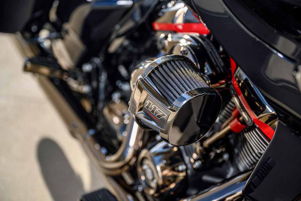Für die Power ist der Milwaukee-Eight 117 V-Twin-Motor zuständig, der bei allen CVO-Modellen verbaut ist und der mehr Hubraum (1923 ccm) hat und mehr Drehmoment entwickelt als jeder andere Motor, der serienmässig in einem Harley-Davidson Motorrad verfügbar ist. Das bedeutet für die CVO Road Glide Limited 169 Nm Drehmoment und 106 PS. Der High-Performance Einlass hat einen höheren Luftdurchsatz, um die Performance zu maximieren und dem Motorrad noch mehr Hot Rod Charakter zu verleihen und die Auspuffanlage ist so ausgelegt, dass die Performance im Rahmen der gesetzlich zugelassenen Lautstärke maximiert wird und ein attraktiver Auspuffsound entsteht.